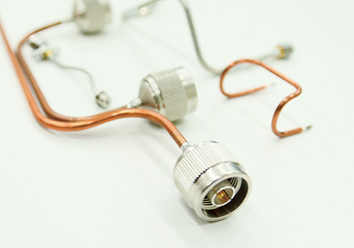 弊社では、セミリジットケーブル、セミフレキシブルケーブルのコネクター取り付け、また、三次元のフォーミング加工も可能です。セミリジットケーブルは高周波特性に優れ、外導体に銅パイプを使用している為、最終的に使用する形状に簡単に曲げることが出来ます。曲げた後もそのままの形状を維持しますので、機器配線用として幅広くご利用いただけます。セミフレキシブルケーブルは、セミリジットケーブルと同構造で非常に柔らかい高周波特性に優れた製品です。外部導体は銅編組全体が錫コートで、マイクロ波帯においても充分なスクリーニング効果を発揮します。機器に適した曲げ、フォーミングが可能で機器の高密度化が図れます。また、弊社では位相測定も可能ですので、ぜひお気軽にご相談ください。